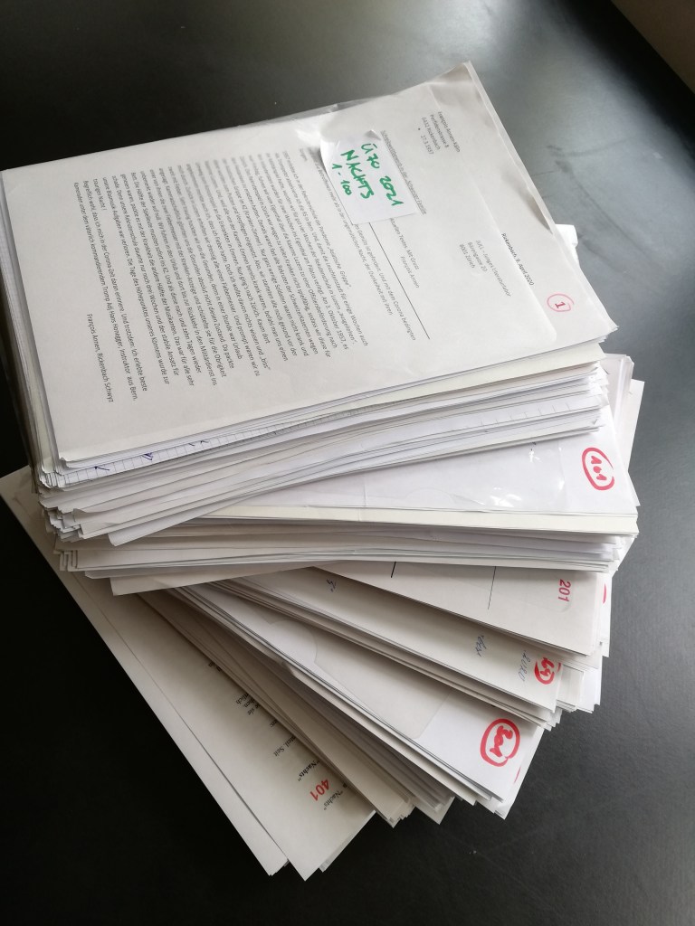 Nun macht sich die Jury an die Herkules-Lektüre. Voraussichtlich im Mai treffen sich alle Jurymitglieder an einer Sitzung. Die Namen der Gewinner/innen sollten also Ende Mai publik gemacht werden können, gleichzeitig mit dem neuen Thema der 17. Ausgabe.
